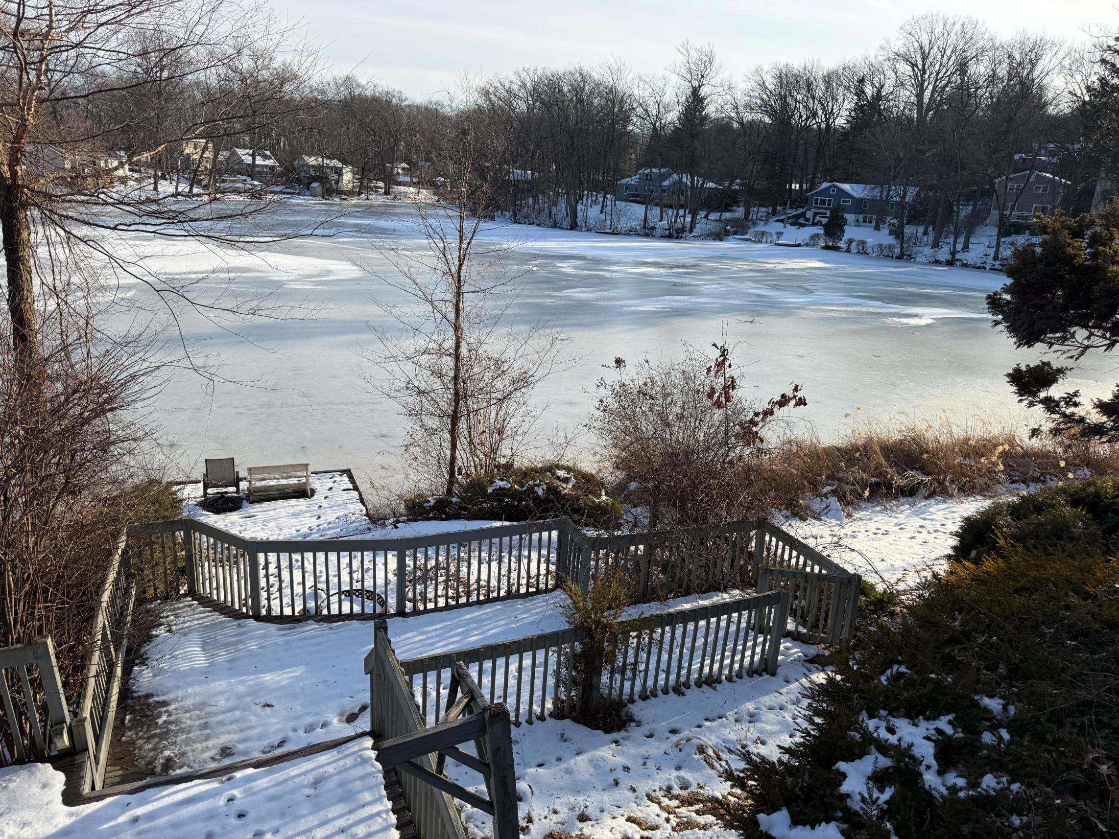 This spacious two-story residence encompasses approximately 3,498± square feet on a 0.47-acre lot, with 4 bedrooms, 2.5 bathrooms, and a two-car garage. A dramatic two-tiered deck overlooks the lake, enhancing views and outdoor living potential. A rare larger footprint on the lakefront, this property appeals to buyers seeking generous interior space coupled with classic neighborhood charm.